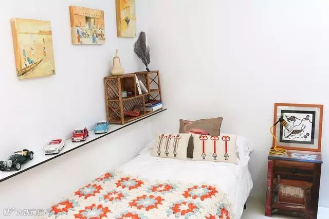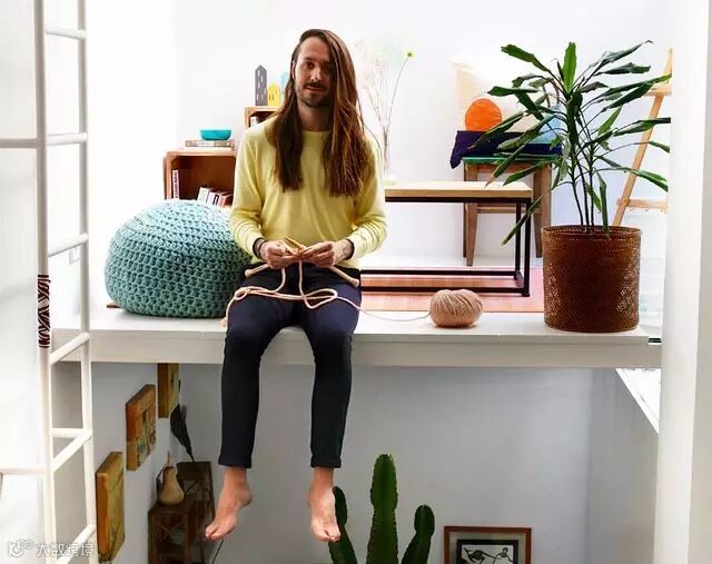 房子的采光主要依靠屋顶的天窗以及洁白四壁的光线反射。这个长发飘飘的怪蜀黍,手中拿着热爱的织物,与他的家融为一体。