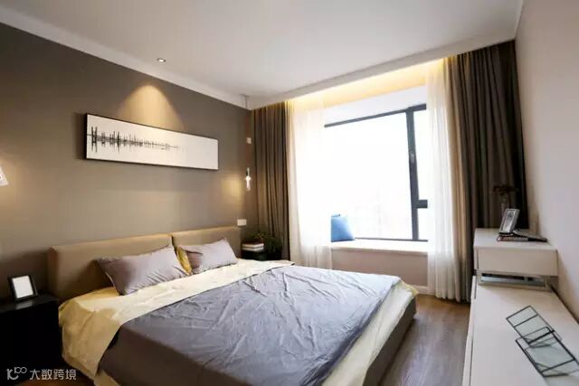 ▲卧室主要想营造一种安静的氛围,就是好好的留给睡眠,所以整个卧室的色系是偏深的。
