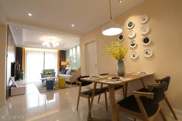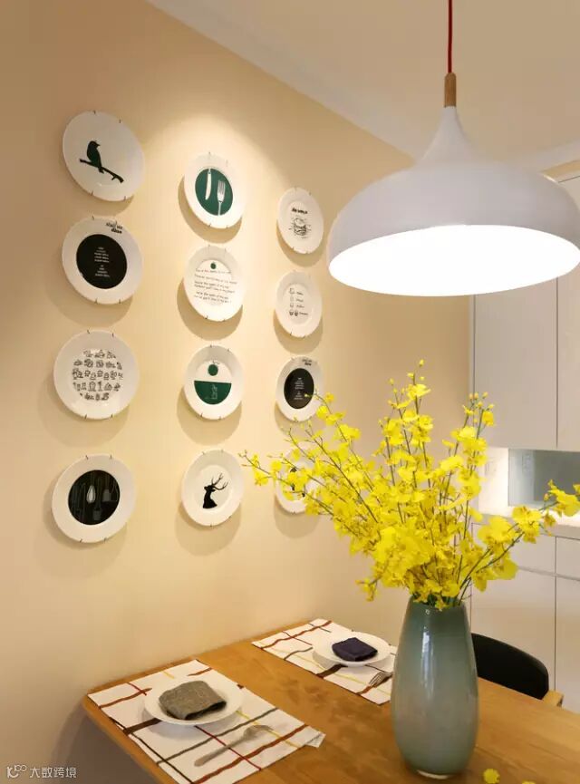 ▲安静的鹅黄色与欢快的跳舞兰,一动一静,圆形的装饰盘,呼应了餐厅的空间。