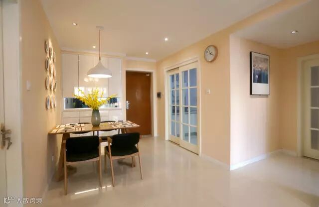 ▲餐厅,过道的设计主要采用了大面积鹅黄色,让整个空间变得温馨,在软装上也是与之统一,或深,或提亮,但都是在一个色系里,所以整体看上去更协调。