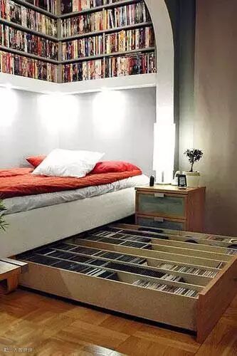 满墙的书籍以及床下方空间的极致利用都很令人惊叹。