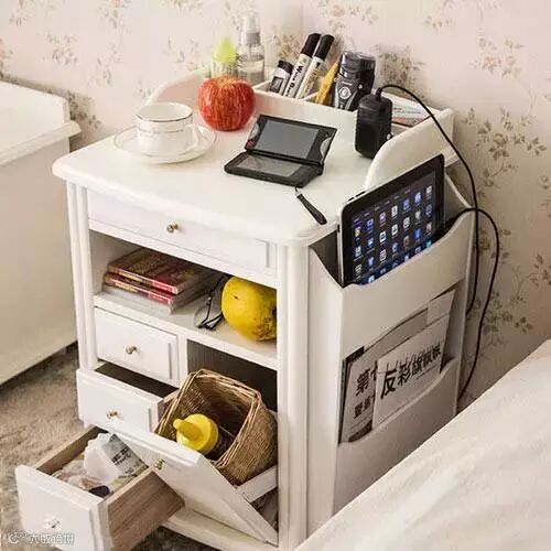 床头柜内部的空间是隐形的收纳之地,所以也不可放弃。