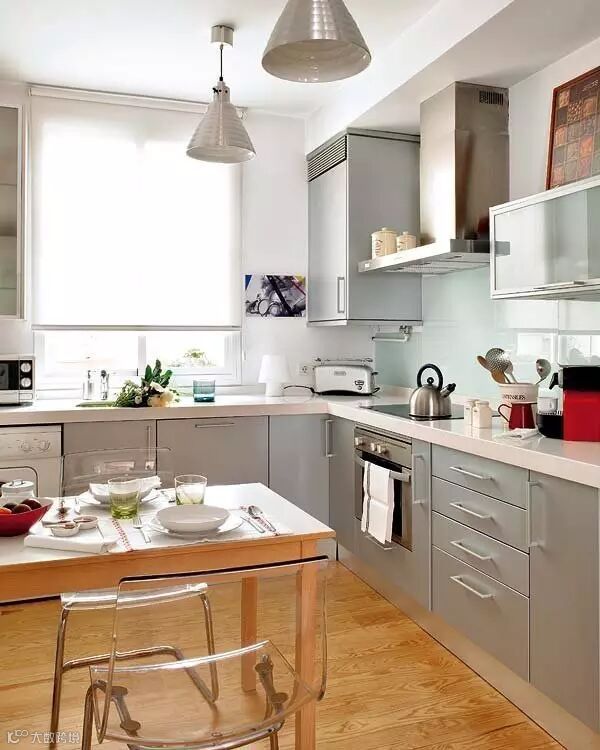 ▲金属感十足的厨房处处彰显着浓郁的现代气息,烹饪区前安装了一块玻璃,方便清洁。椅子采用透明设计,厨房看起来更宽敞。