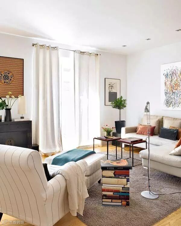 ▲墙上的字画和具有中国古代特色的家具,为生活增添了一丝淡雅的怀旧感。斜对现代抽象画,鲜明的对比烘托出客厅中西混搭的时尚氛围。