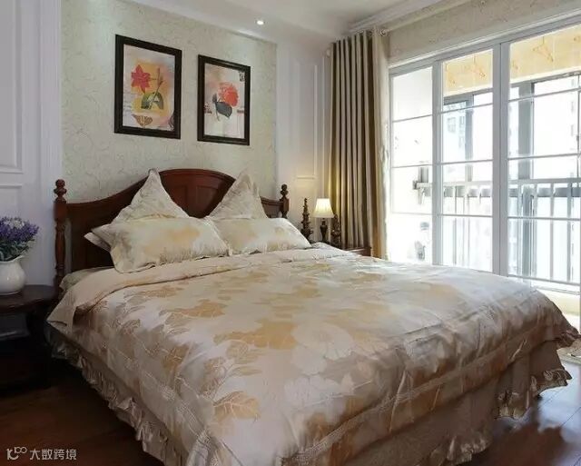 ▲卧室,实木双人床,典雅舒适