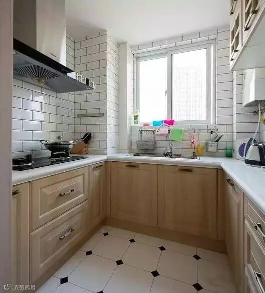 ▲厨房,简单至极的白色墙砖,搭配实木门扇橱柜,效果非常好