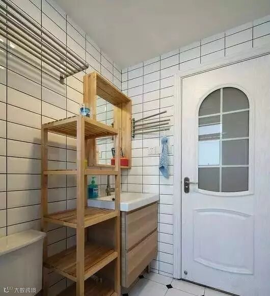 ▲卫生间,木质浴室柜,同样的白瓷砖,让人感觉很放松