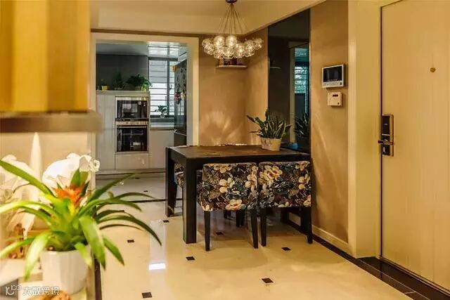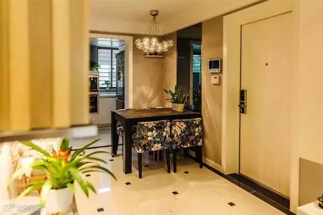 为了避免空间的繁复,设计师将原木像篱笆一样竖直,用排列整齐的线条勾勒出别致的玄关,这一巧妙的设计
