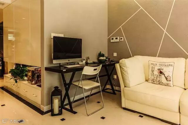 主卧中格子衣柜和花型墙纸相得溢彩。