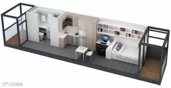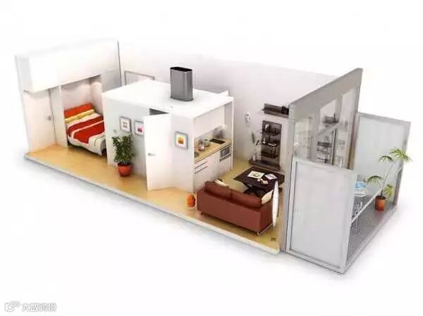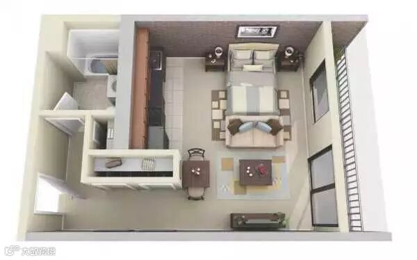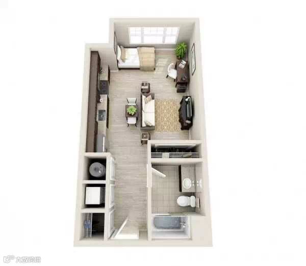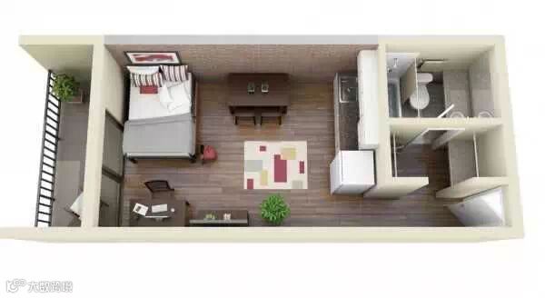 这个是在比较细长的狭小户型进行设计,甚至还带了阳台!