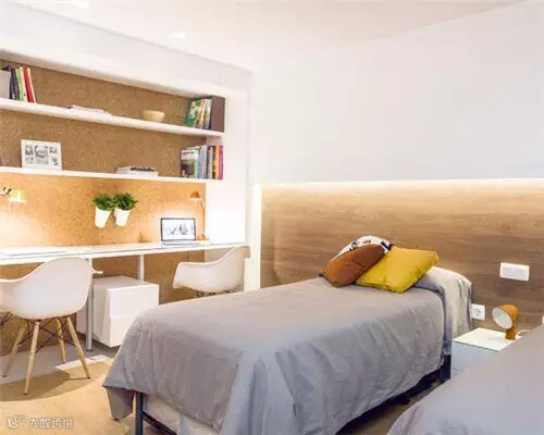 如果想在小卧室里增添一个书房不如学学这款卧室,依靠墙面用隔板的形式打造收纳柜和书桌。