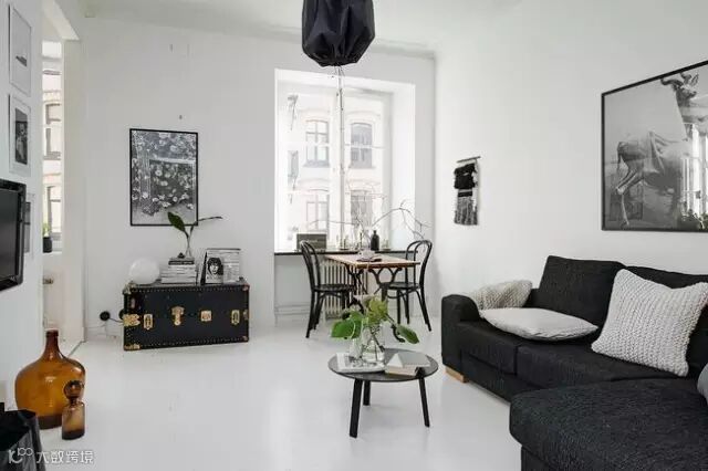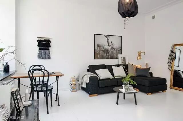 1.空白的墙面用黑白色调的画框装点,让整个空间不显单调