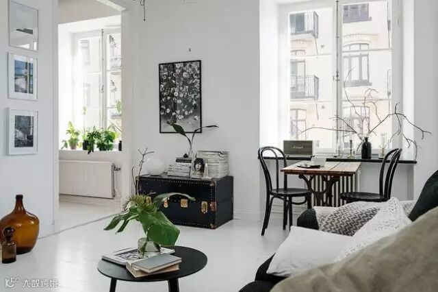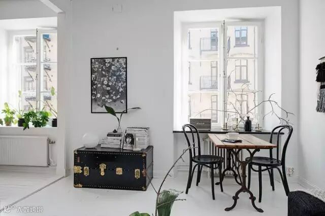 2.小户型的绝妙搭配:白地板、白墙壁、大玻璃窗