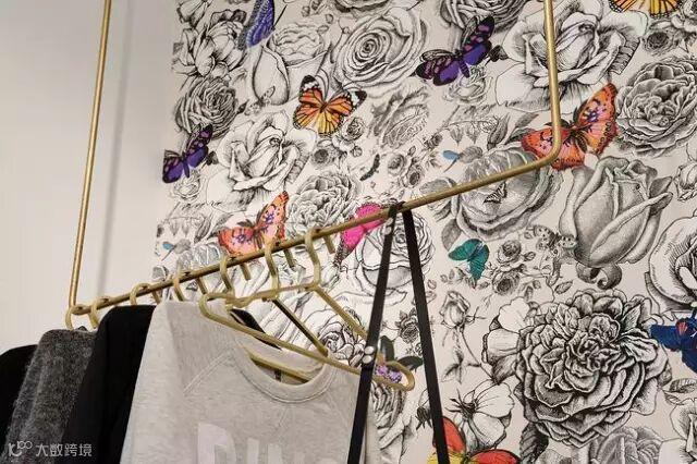 2.将一面墙壁贴上壁纸,做一个简易衣架,就是一个开放式的衣橱啦