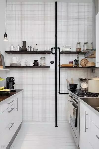 2.墙面搁板和橱柜的利用是空间不显拥挤的解决方法