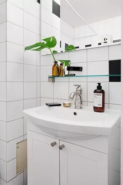 1.卫生间全白的瓷砖太单调,可以加几块黑色瓷砖