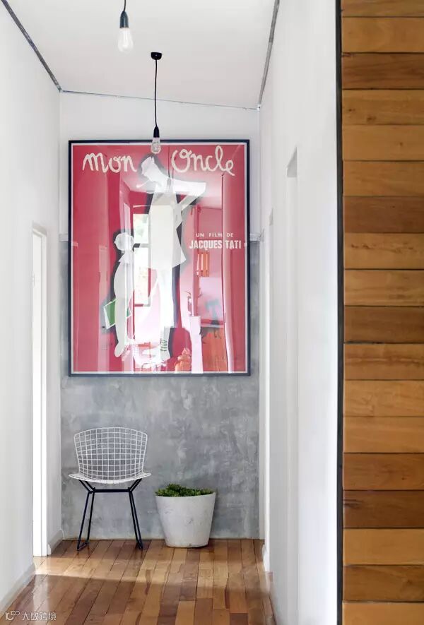 ▲走廊尽头挂着一幅旧海报,搭配水泥白漆,一扫沉闷无聊的感觉。