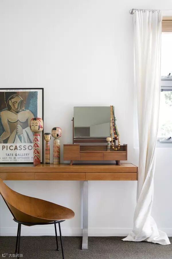 ▲卧室显得简简单单,小编觉得那面白墙可以让人脑洞打开!顺便给梳妆台点赞。