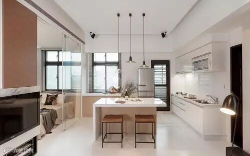 ▲ 以白色基底铺陈规划的餐厨空间,型塑着简洁清爽的料理环境。