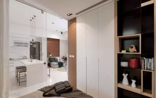 今天和大家介绍的是一套36平方的单身公寓,面对不算宽裕的空间,设计师根据屋主日常的起居需求,进行量身定制的格局变更,拆除不必要的墙面隔间,配合双面柜概念的收纳手法,以玻璃界面划分各自独立的空间,让窗外的暖阳与绿意,能够缓缓漫入风格当中,一起来欣赏一下。