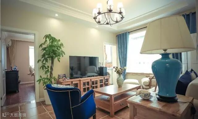 ▲ 因为爱好摄影的关系我老公对色彩的搭配要求非常高,客厅需要用蓝色突出,但是蓝色又有很多种蓝,要尽量保持统一,负责买软装的我表示很晕