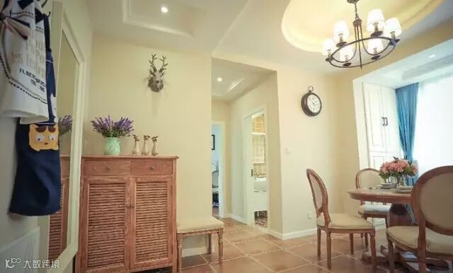 ▲ 原本打算在鹿头的位置做出一个玄关的,就是美式常见的那种拱形设计,但很无奈这是一面承重墙,不能敲!因此索性就定制了一个鞋柜外加一张穿鞋凳,在实际入住后感觉还是相当实用的,还有穿衣镜是宜家搬回来的,对于女生每天出门照一下,太重要了