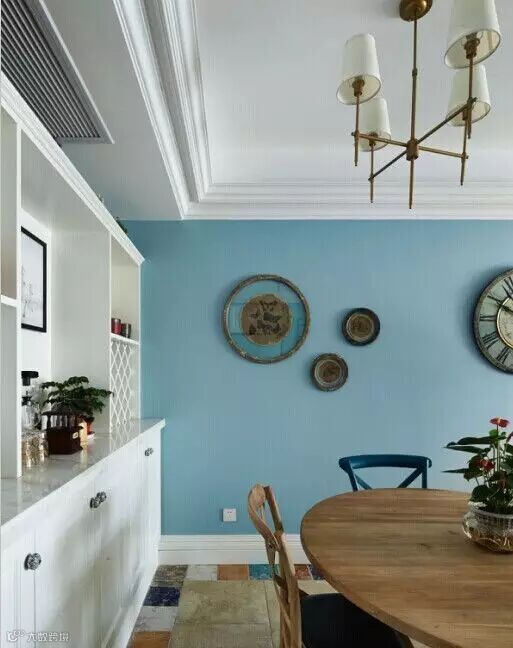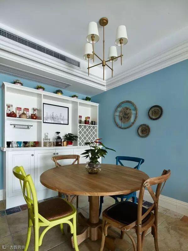 ▲圆桌+法式交叉背椅,很有美剧田园风的感觉,餐厅这一块田园风。