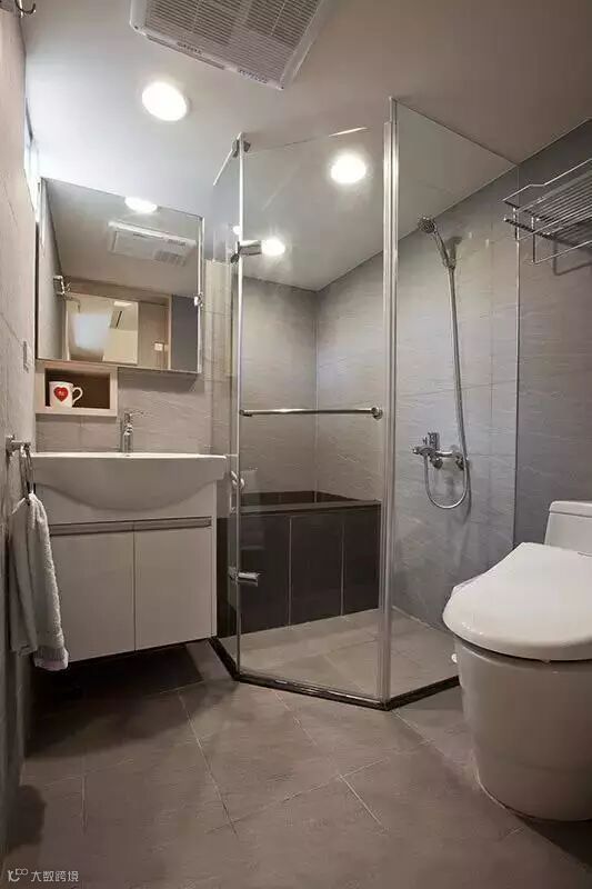 ▲其中一个卫生间,用玻璃隔的洗浴房,整体设计再一次体现空间设计的极致