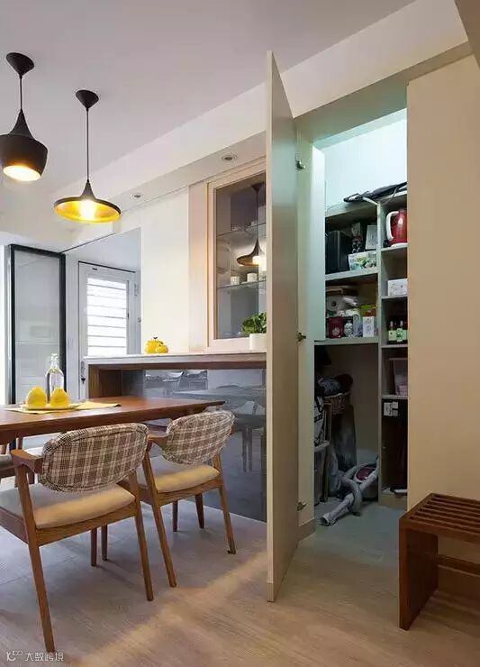 ▲餐厅旁的隐形收纳设计,关上门与整体完全融合