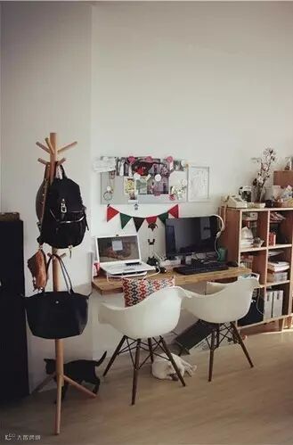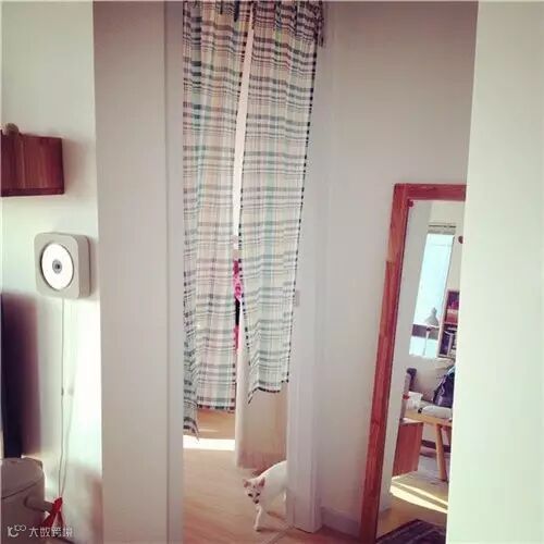 做了开放式的拉帘衣柜,还蛮节省空间的。