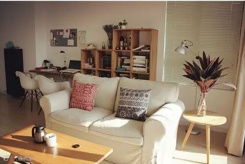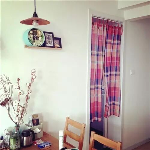 餐厅与卧室之间用一块格子隔断帘,蛮有特色的