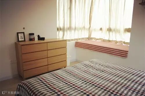 整个卧室是最有MUJI风格的地方,也是我最喜欢,装的最满意的地方。床上用品都是MUJ风,非常简洁清爽!卧室门口也用到了MUJI的隔断帘。
