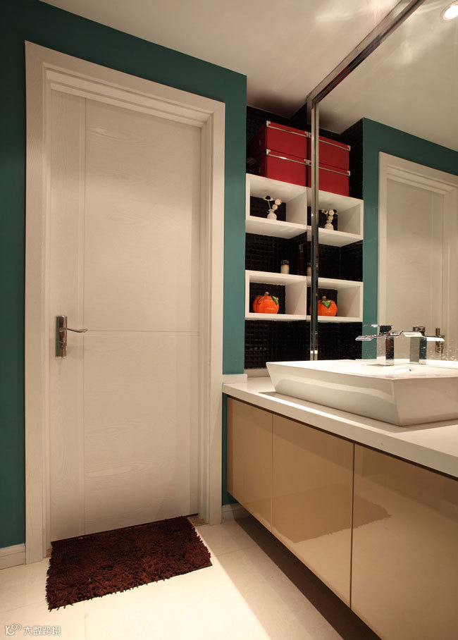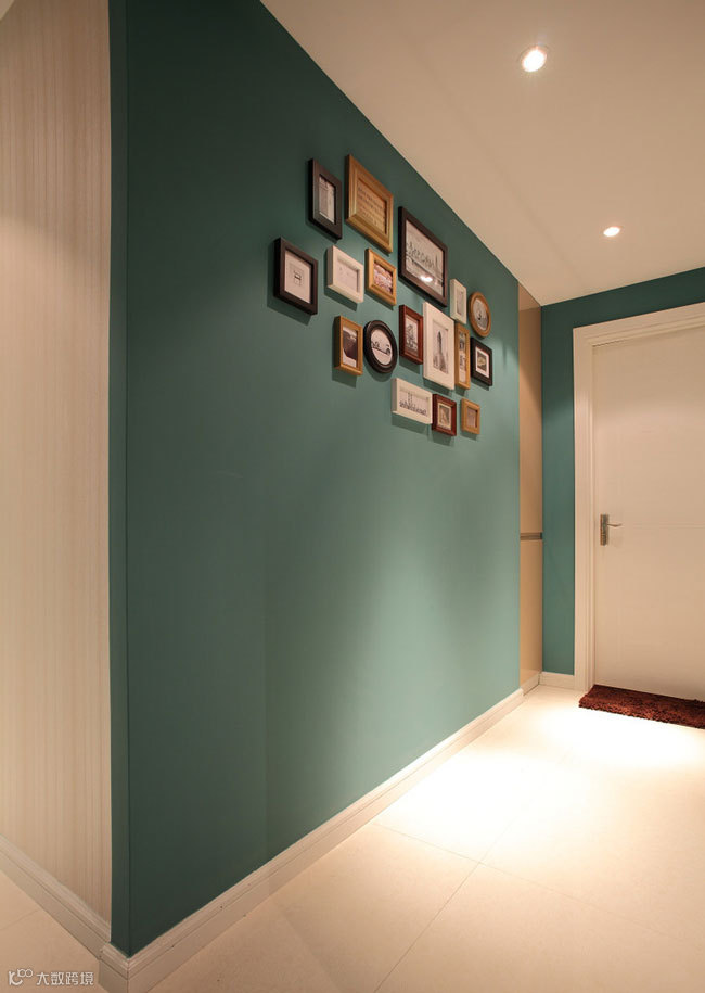 入门设计简约而又具有创意,通过墨绿色的墙体,加上简单的配画,给人焕然一新的感觉。