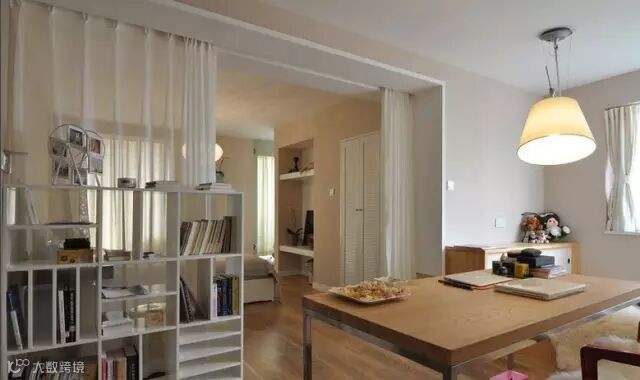 ▲ 利用两个柜子之间的距离,开辟出一个小书房的位置