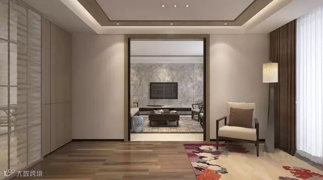 ▲ 客厅的地板是现代风格的颜色,地板的色调不宜太深
