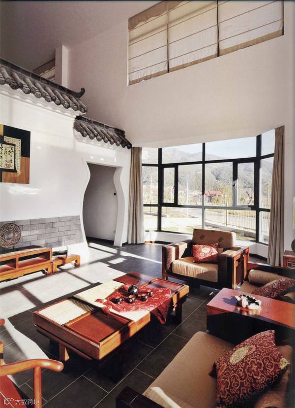 ▲ 新中式客厅典型配套:左右两把圈椅配当中一只茶几
