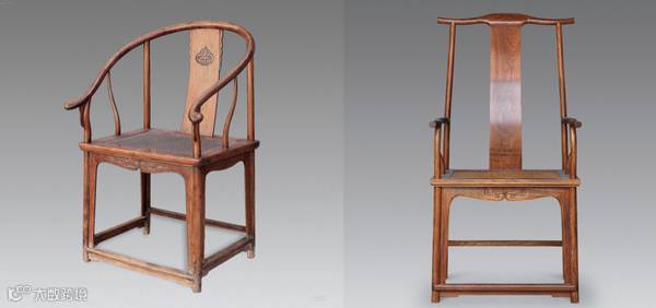 ▲ 中式家具中最常出现的两类椅子,左图圈椅,右图官帽椅