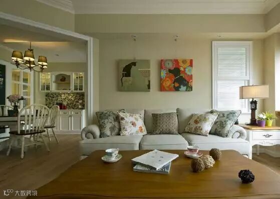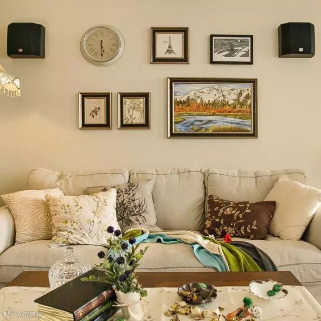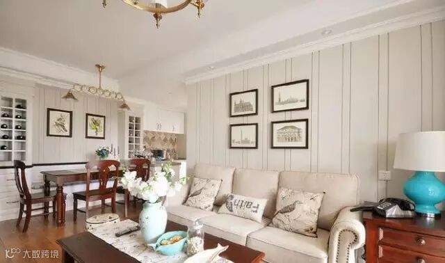 ▲ 美式沙发+美式茶几+美式落地灯台灯+美式特色自由组合画,“轻美式”就是要这样靠软装来打造