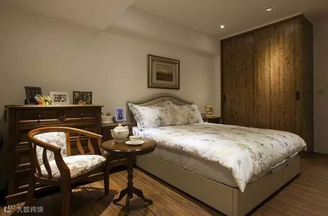 ▲床头处的柱体透过床头柜修饰美化,加上假梁与间照修整出完美比例