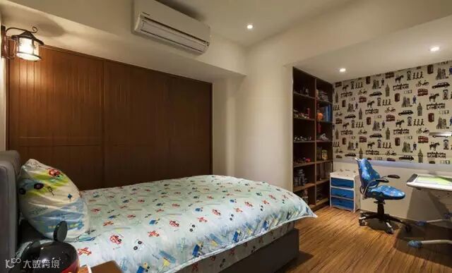 ▲墙线条进而形塑内玄关动线,让男孩房有更完整的铺排设计