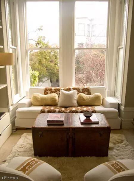 紧挨着窗边铺一块软垫,再垫一块地毯,几只抱枕随意地靠在墙上,窗外照进慵懒的阳光,就在这里听听歌、看看书、喝喝咖啡,感觉生活的滋味就是如此美好!
