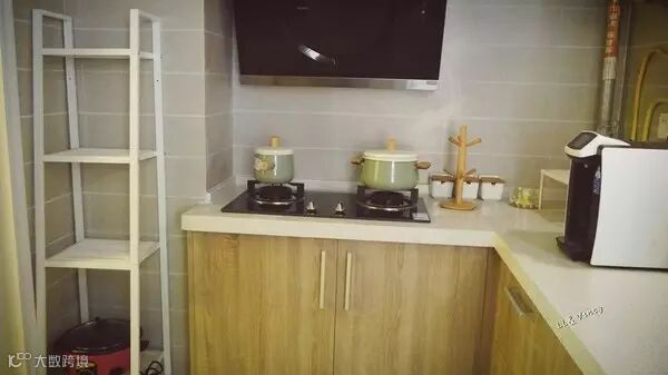 厨房台面上的东西还是挺多的,但摆放好也不会太凌乱。整体风格以明亮温馨为主,边上白色梯子用来收纳的,花了二三十装了一个自动感应灯,晚上抹黑也可以找食物啦