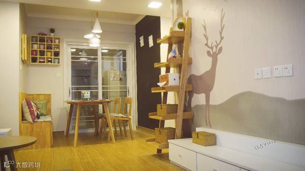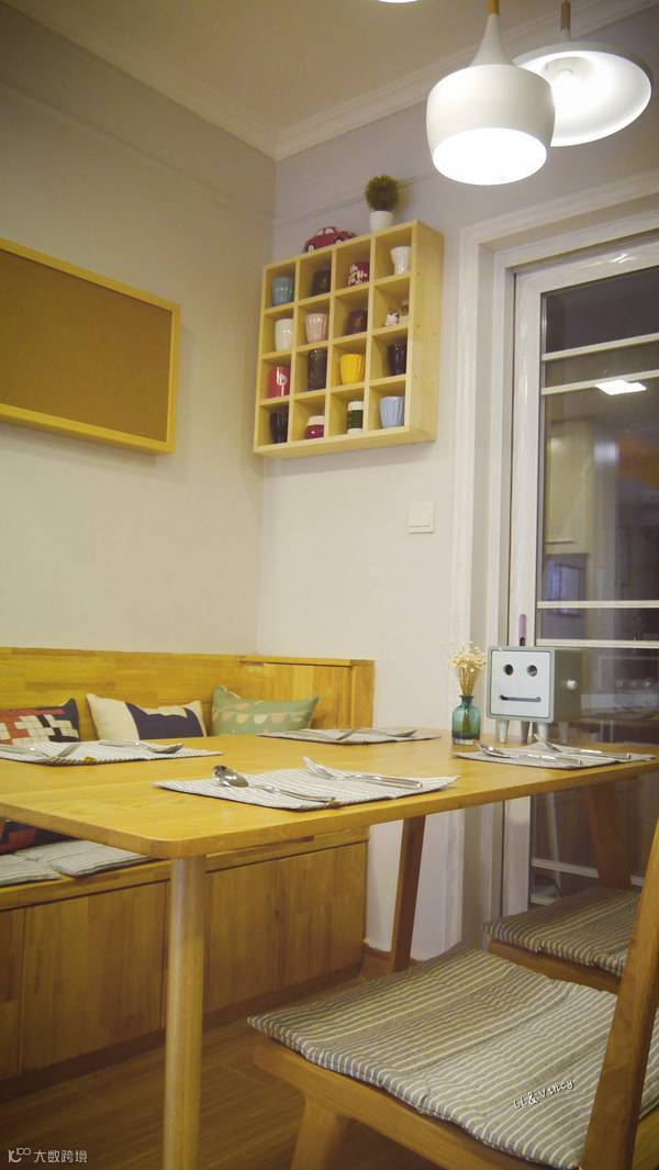 餐厅处利用转角做了一个卡座,餐桌是细脚凳的,看上去更轻盈,空间更大。木质楼梯收纳架上摆了许多淘来的摆件。也可以放照片啦,旅游纪念品啦。如果不是为了装新风系统和中央空调,我对吊顶和石膏线是拒绝的,比较想装大平顶或者轨道射灯,但是家里房子不高,不太现实,只能在下一套房子里实现了。