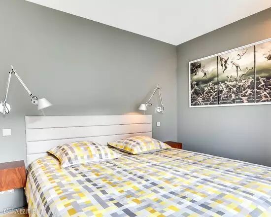 2搁板式的床头柜和工业风床头壁灯帮助打造简约卧室