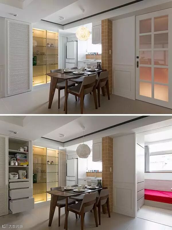 ▲设计师特别规划各种形式的收纳功能,满足电器、碗盘的整理需求,并透过拉门将杂乱收于无形。