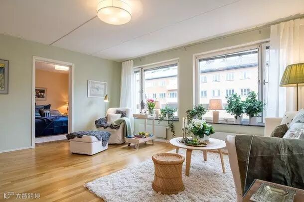 ▲两扇大窗户保证了客厅的采光,在寒气还未退却的春季,一张羊毛地毯恰到好处。