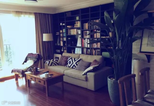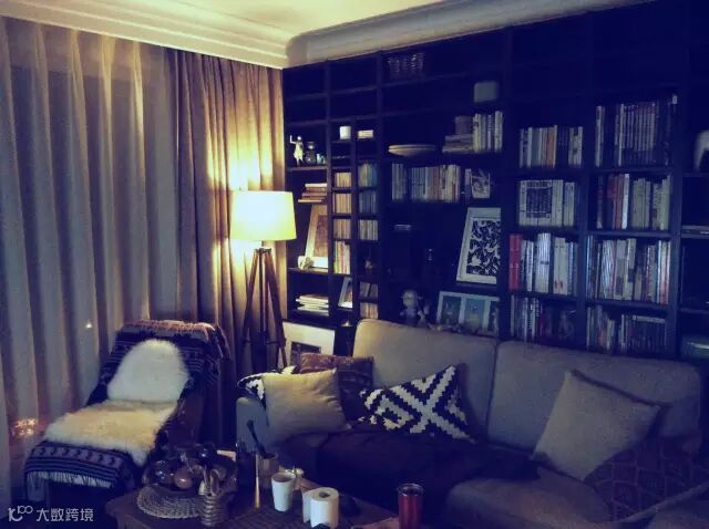 [宜家买的书柜沙发,原木凳子是家具市场淘来的]