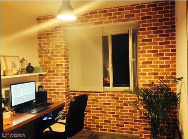 壁纸跟餐厅是统一风格,模拟砖墙,非常温馨。