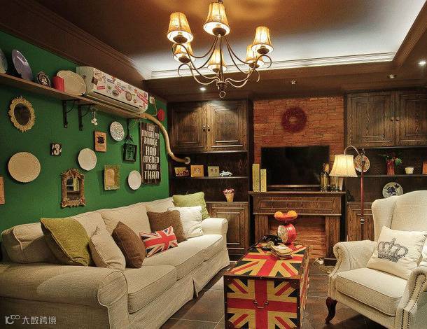 导读:大面采用了绿色的设计,有做旧的处理,每一处都充满了个性与年代感,一个独特张扬的居所。电视背景墙采用了文化石的