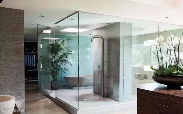 ▲MV导演David LaChapelle的浴室是我们可以轻松借鉴的例子,玻璃隔断既做分区又为整个淋浴区增添轻盈感。